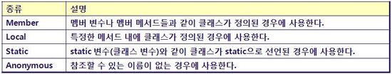 Inner class의 종류와 사용 방법